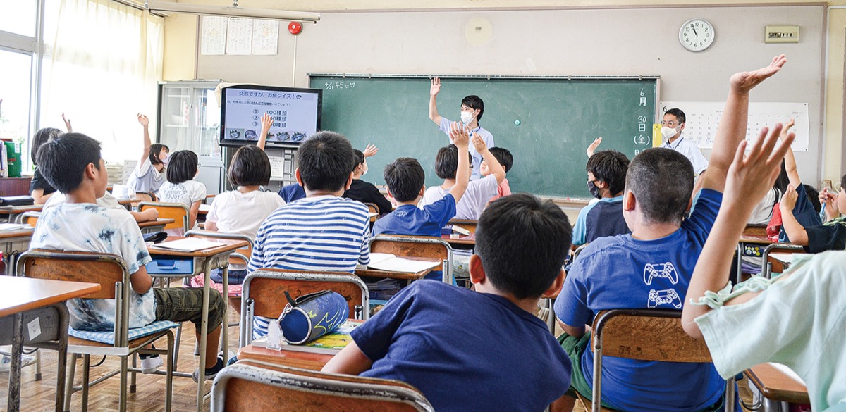 5年2組の担当教諭、長澤考江さんは「せっかく地元に漁港があるから、そこで働く人や魚を大切にしている人について知ってほしい」と市に出前授業を依頼したという。児童らは事前に調べたことをさらに深く知ろうと、「どうして小田原では定置網漁が行われているの」「小田原で獲れる高級魚は」などの質問をぶつけていた。