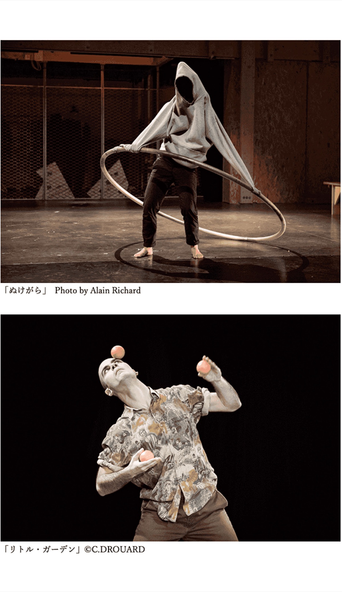 「ぬけがら」は、若きサーカス・アーティストのメロディ・モランさんによるミステリアスなパフォーマンス。また、「リトル・ガーデン」は、ジャグラー兼パフォーマーのファブリツィオ・ソリナスさんが出演する。