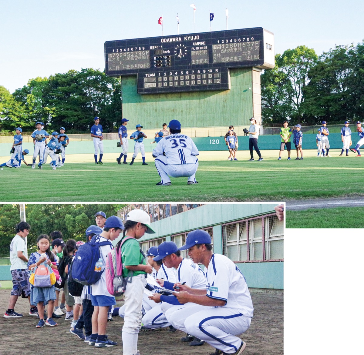 小田原球場(同市東大友)で7月23日、プロ野球イースタン・リーグ公式戦(横浜DeNAベイスターズ対読売ジャイアンツ)が行われ、試合終了後にDeNAベイスターズ選手が「ふれあいイベント」に参加した。