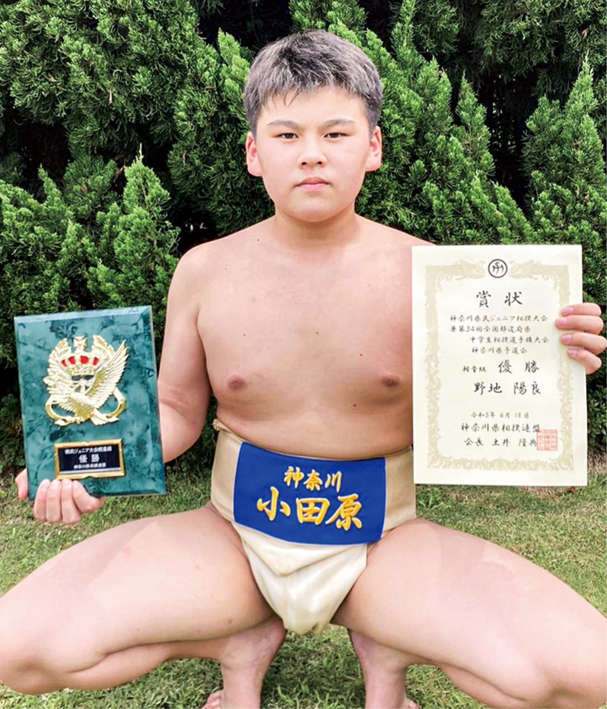小田原相撲連盟に所属する野地陽良(ひたち)さん(箱根町立箱根中学校3年)が、8月6日(日)に両国国技館(東京都)で開催される「第34回全国都道府県中学生相撲選手権大会」に出場する。