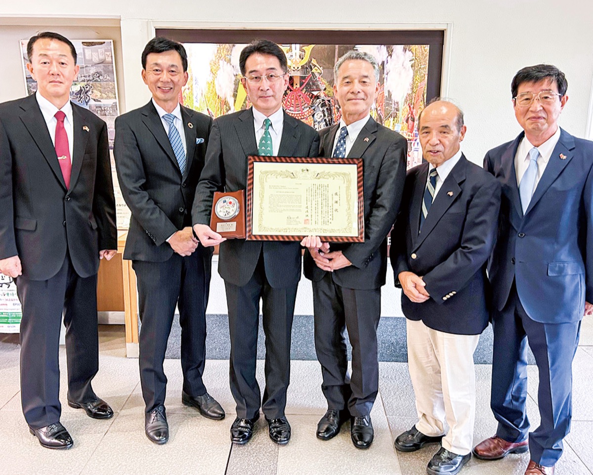 日米ネービー友好協会(JANAFA)の道満誠一会長、古宇田和夫副会長らが7月31日、小田原市観光協会を訪問し、同観光協会の長谷川孝春理事(前専務理事)に感謝状と盾を贈呈した。
