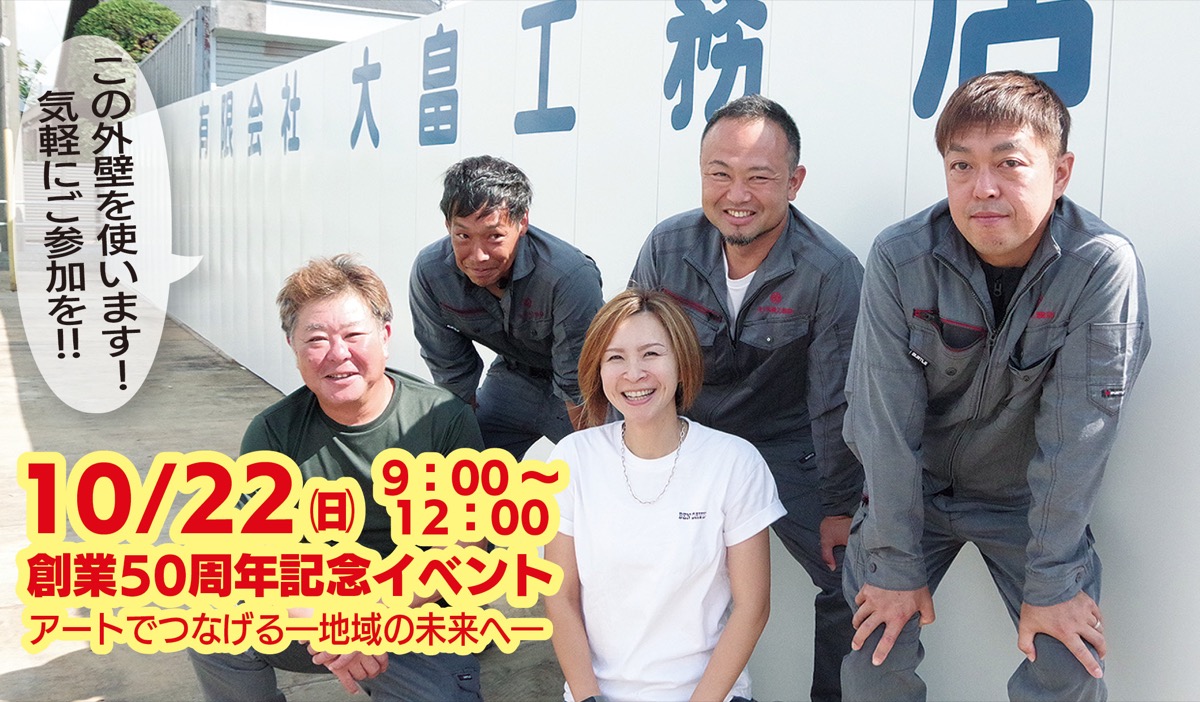 完成した作品は同社のシンボル外壁として活用される。大畠代表は「自由な表現の場や地域交流の機会として活用してほしい」と期待を語る。