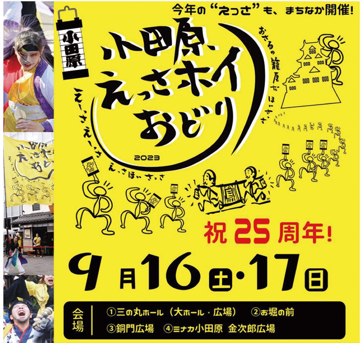 16日、17日の本大会は昨年に続き「まちなか」開催。三の丸ホール、お堀の前、銅門広場、ミナカ小田原金次郎広場で40を超えるチームが華麗な舞を披露する。詳細は実行委HP(https://essahoi.com/)から。