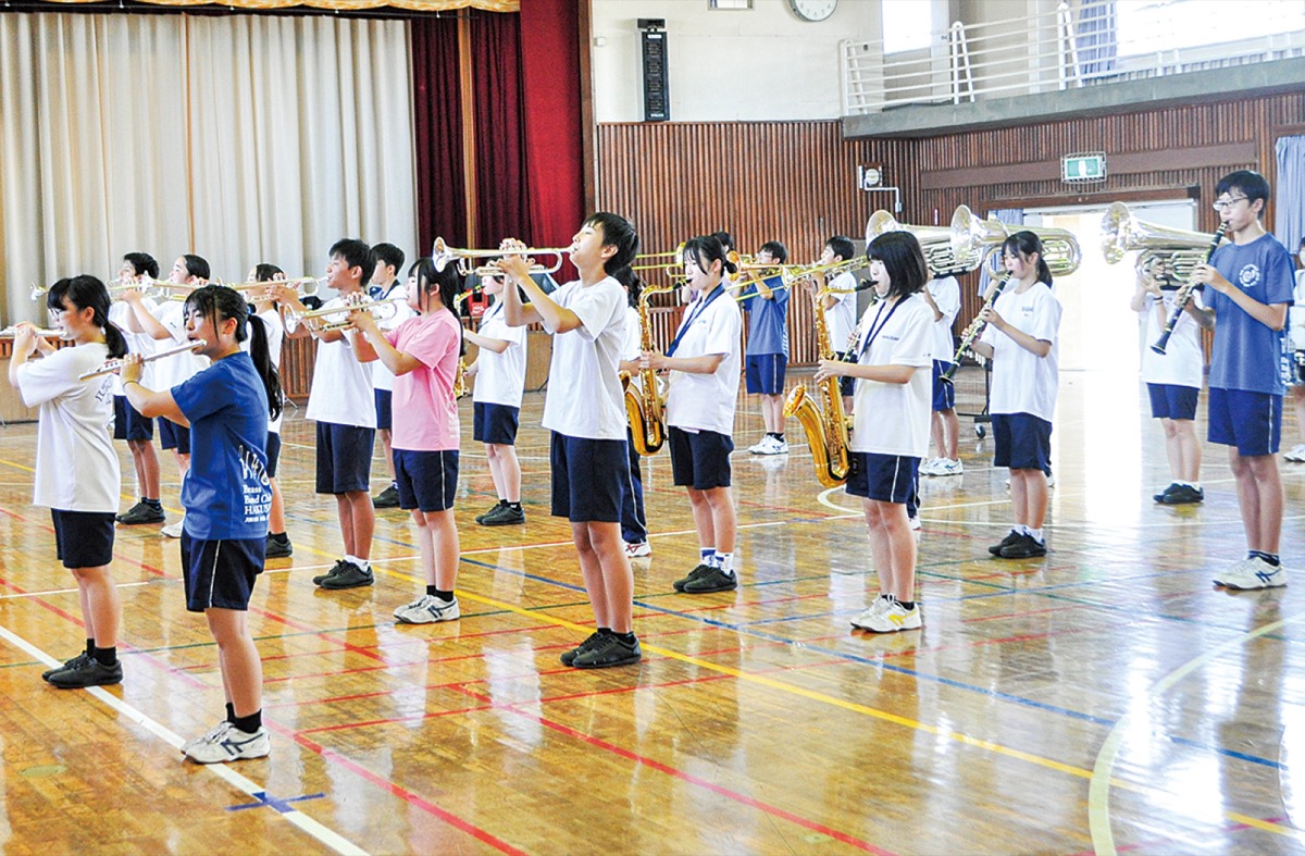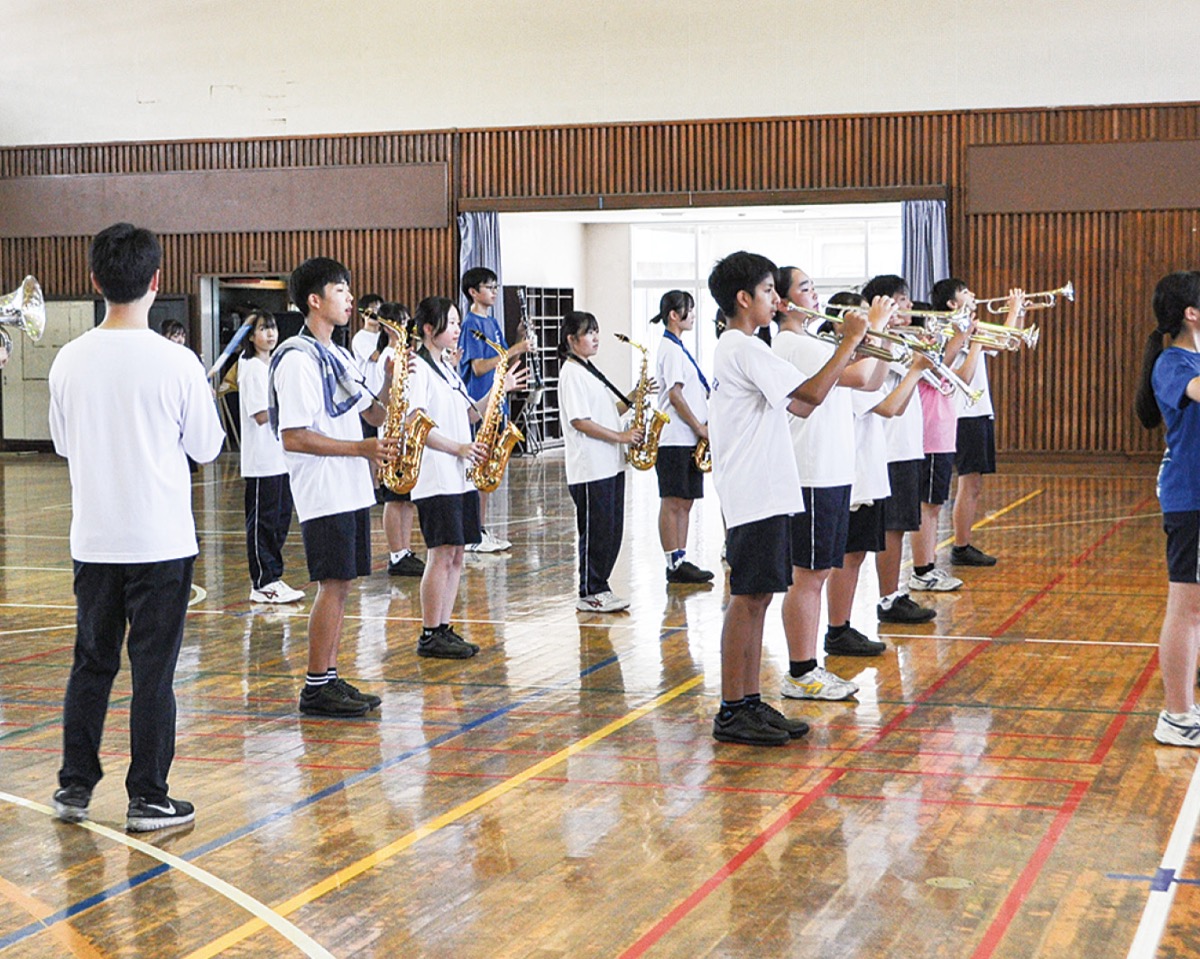 同チームでの合同練習は、参加イベントに向けた1、2回のみだが、それまでにも両校がそれぞれ同じ練習を行い、顧問同士が連絡を密に取り合い情報を共有している。また、市内の吹奏楽団体に指導を依頼することで、部員の技術向上とともに顧問の負担減少にもつながるという。