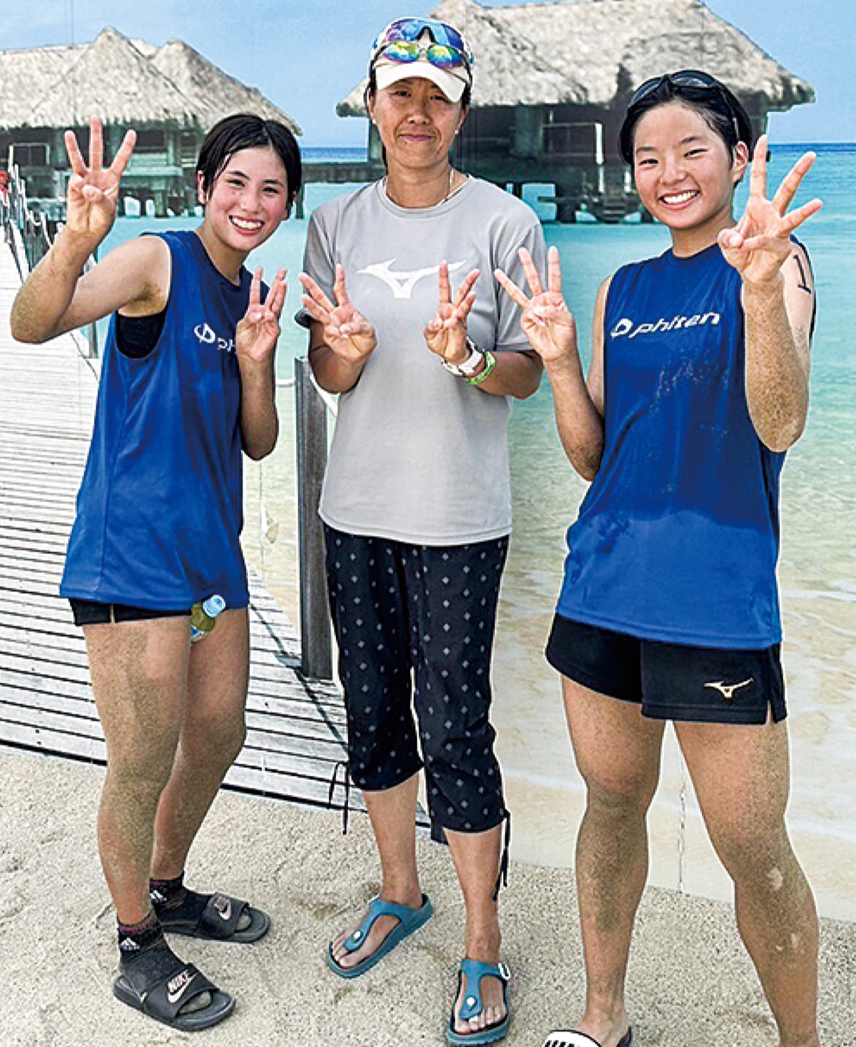 1年生からペアを組みビーチバレー大会に出場してきた2人。室内と比べて動きにくい砂浜でのプレーに苦戦し、相手ペースに呑まれて実力を発揮できずに終わっていたが、3年目は「とにかく楽しむこと」を意識したと安保さん。点を決めるとハイタッチで喜び失点しても励まし合い、いつもと違う環境を楽しんだ。リーグ戦を全勝で通過し、決勝トーナメントでも1勝を挙げた。