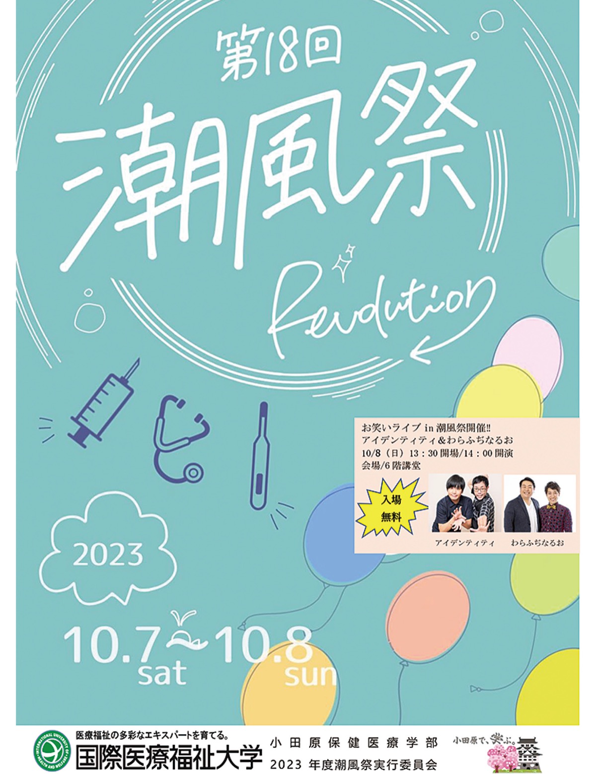 国際医療福祉大学の小田原キャンパス本校舎(小田原市城山/小田原駅西口徒歩3分)で学園祭「第18回潮風祭」が開かれる。10月7日(土)午前10時〜午後5時、8日(日)午前10時〜午後4時。