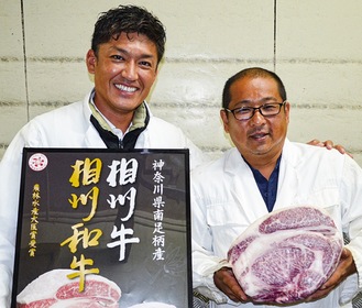 同牧場では、独自飼料で牛を肥育し、かながわブランド「相州牛」として出荷。品評会で数々の最高賞を獲得しているが、今回も餌の与え方を変えるなど工夫を重ねている。相州牛を扱う中川食肉(小田原市)の中川大輔専務は「旨味が濃く、肉本来の味がする」と評価し受賞を喜んだ。
