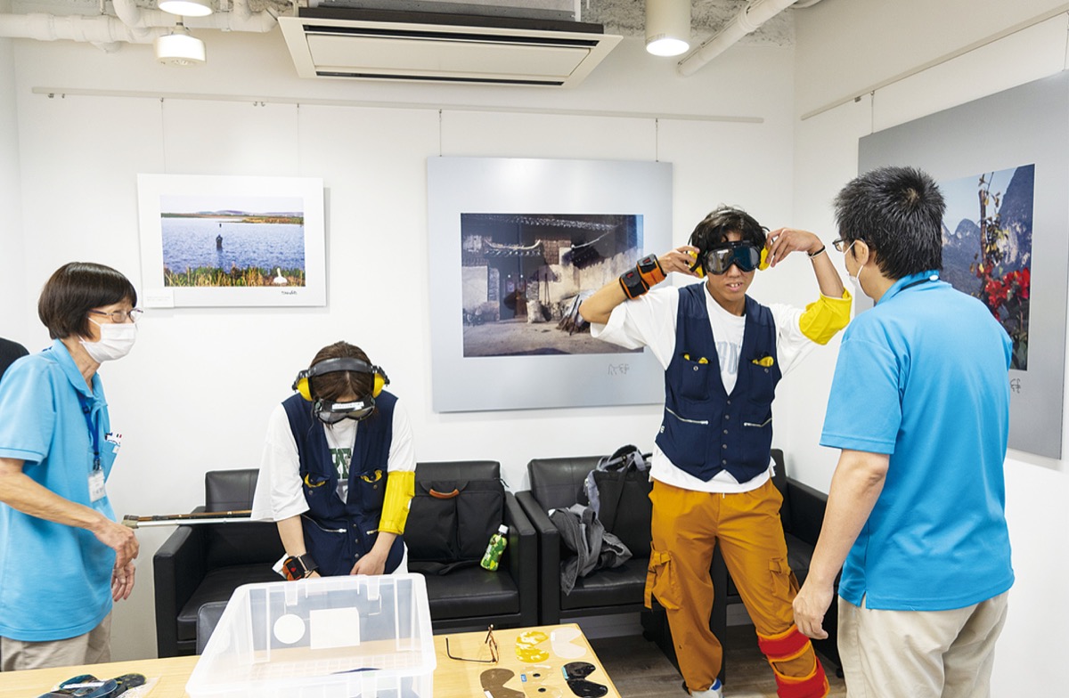 同校では、専門分野の技術を講師から学び、実社会につながる体験をするテーマ学習に取り組んでいる。テーマのひとつ「介護講座」に、地域で福祉サービスを提供する同法人が協力して今回の体験が実施された。生徒は視覚障害ゴーグルやおもり付きベストなどの装具を身に着け、日常生活とは異なる感覚に戸惑いながら、高齢者の身体的不自由さや心情を体験した。
