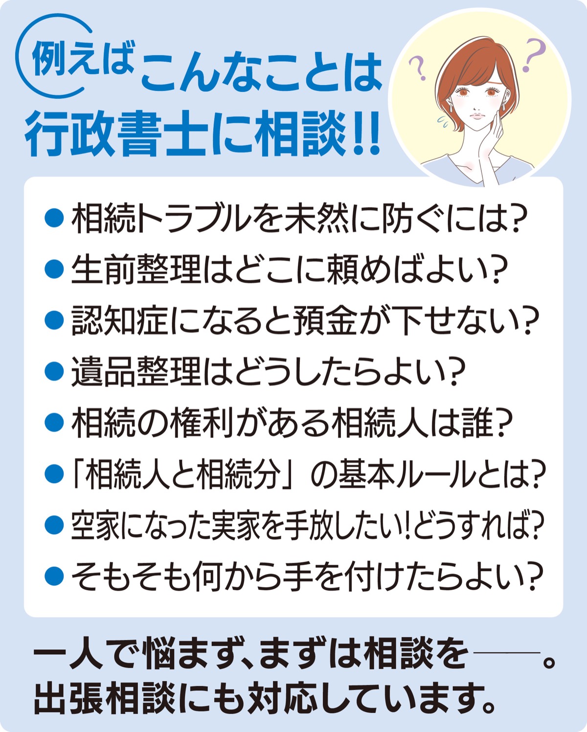 相続、遺言、空家問題等困りごとは行政書士へ
