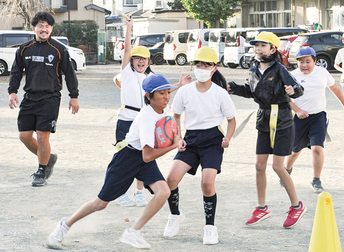 小田原市立東富水小学校では5年生約80人を対象に授業が行われた。2本のひもを腰につけてプレーするタグラクビーを行い、トライを決めたりひもを取って「タグ」と声を上げるなど、盛り上がりを見せた。児童は「短い時間だったけど上手くなれた。楽しかった」と感想を話した。授業後、同チームからラグビーボールがプレゼントされた。