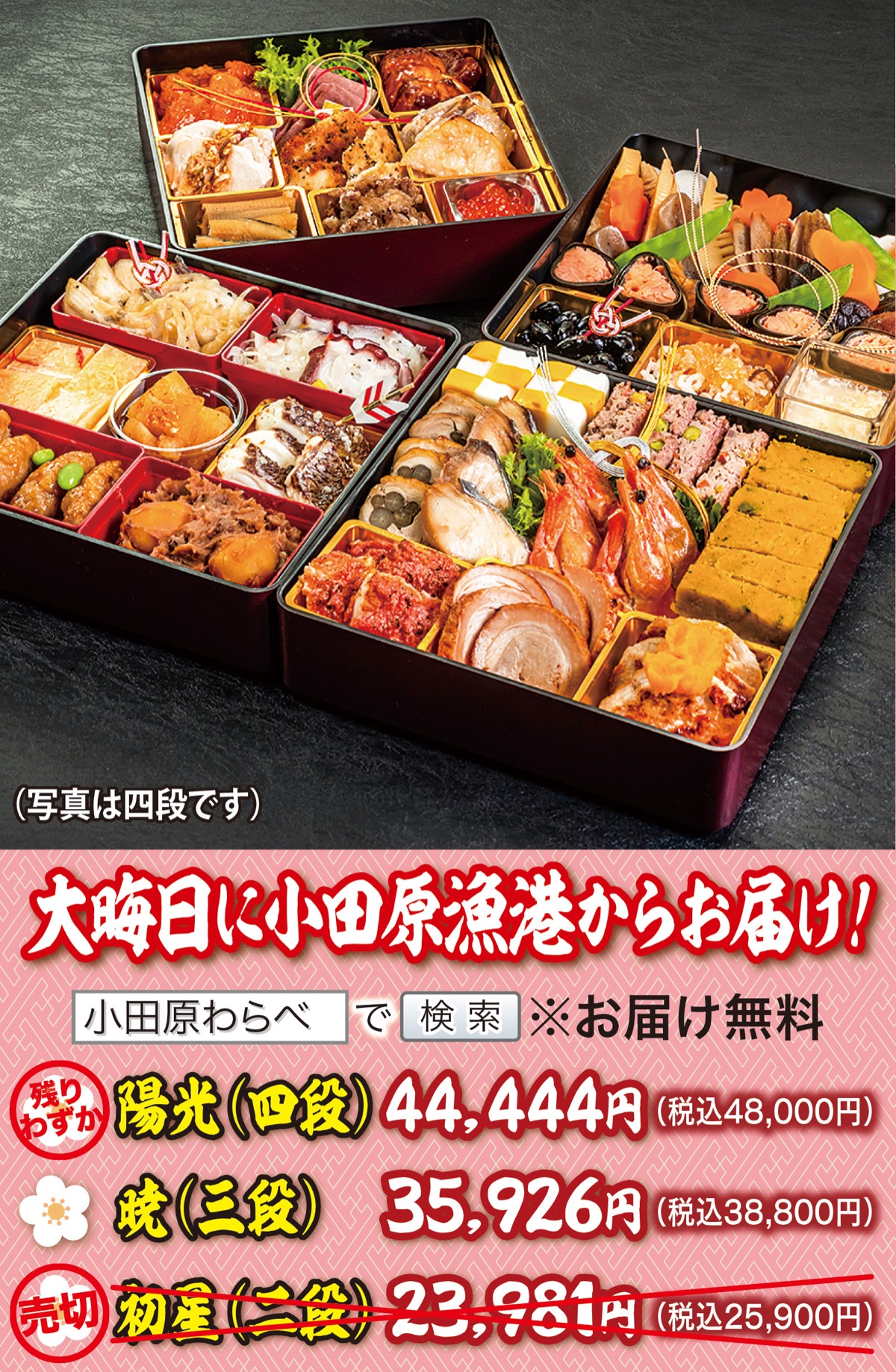 毎年予定数を完売するわらべのおせち。昨年より多く準備した予定数が完売に近づき、今回が最終のご案内。