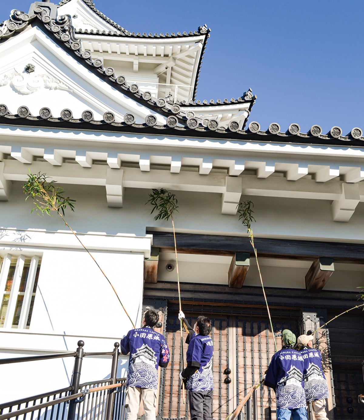 小田原城天守閣、常盤木門にたまった1年のすすやほこりを清掃し、清らかに新年を迎える恒例のすす払いが12月13日に行われた=写真。