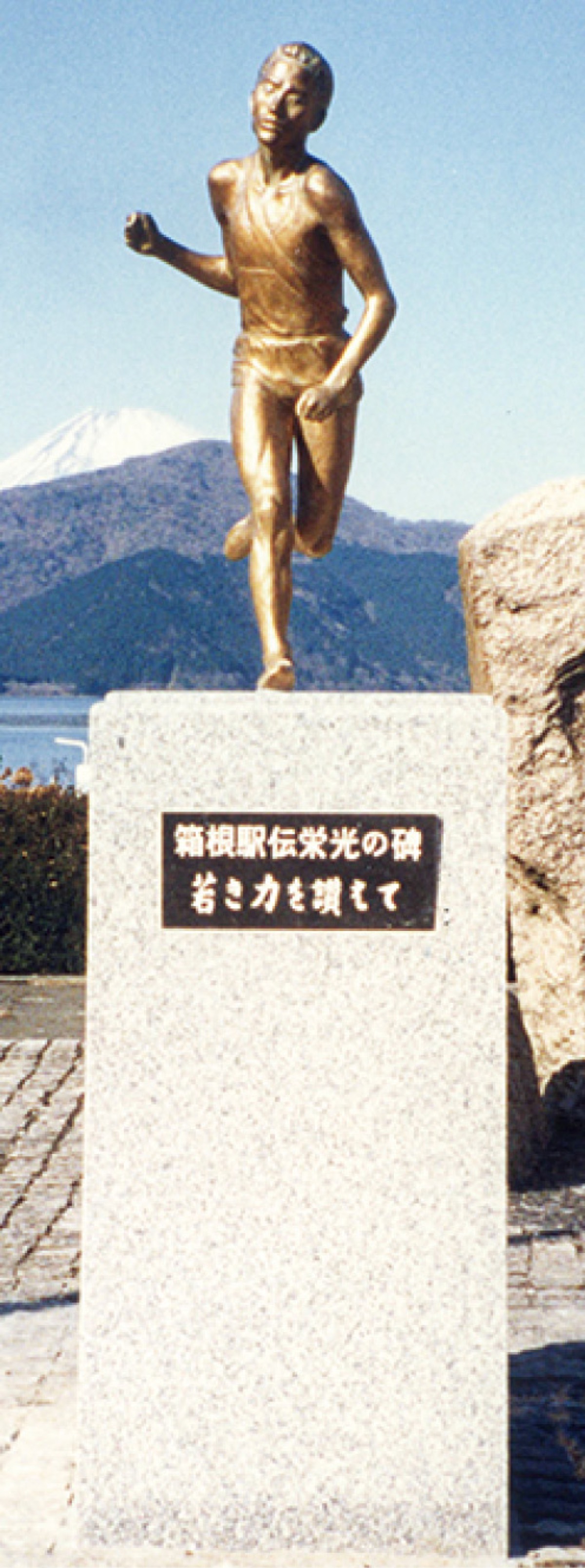 箱根町は100回大会を記念して、往路フィニッシュ地点の歩道に120cm×30cmのプレート=写真=を設置。