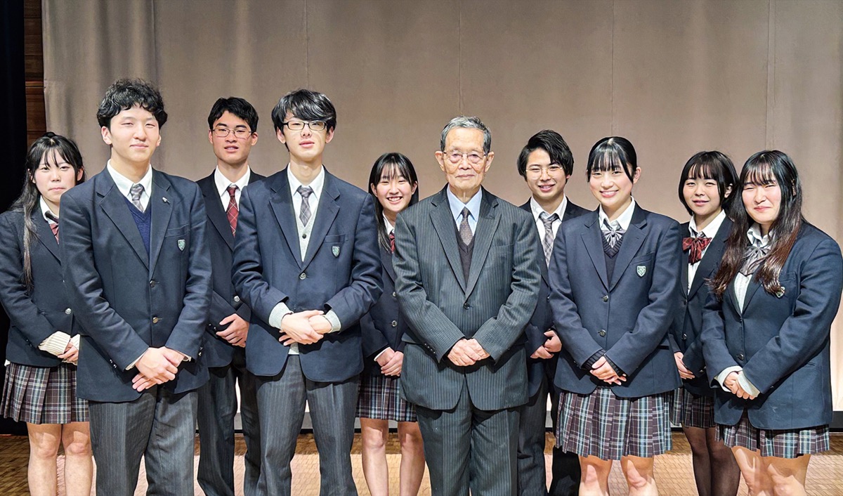 「なくてはならぬ 指折仲間の人となれ。悪しきとて、ただ一筋に捨つるなよ、渋柿を見よ、甘干となる」。学園創始者、新名百刀女史のこの言葉には、今日のSDGsのスローガンに繋がる誰一人取り残さず、一人ひとりの人間を大切に思う心が溢れている。「この精神を継承・発展させ、子どもたちを明日に向かって育てる学校づくりを進めている」と話すのは水野学校長。様々な国籍の生徒が共に学び合う「国際クラス」をはじめ文武両道を実践する「スポーツ進学クラス」、不登校の生徒の再チャレンジをサポートする「ベーシッククラス」など一人ひとりの個性や進路探求に応える多彩なカリキュラムを展開している。その環境下で、生徒たちは自分自身を見つめ、お互いを高め合う学園生活を送る。その生徒たちに話を聞いた。