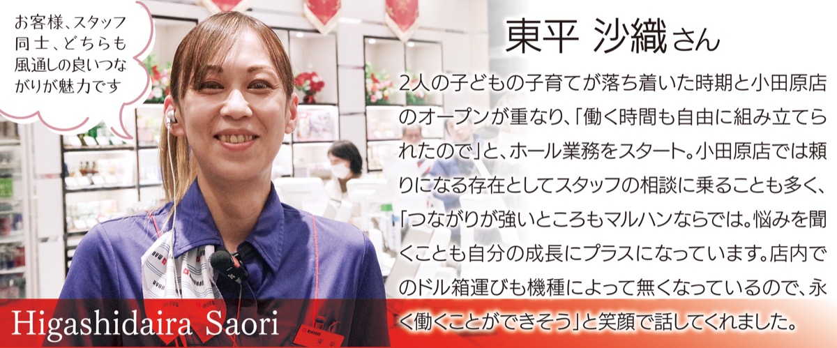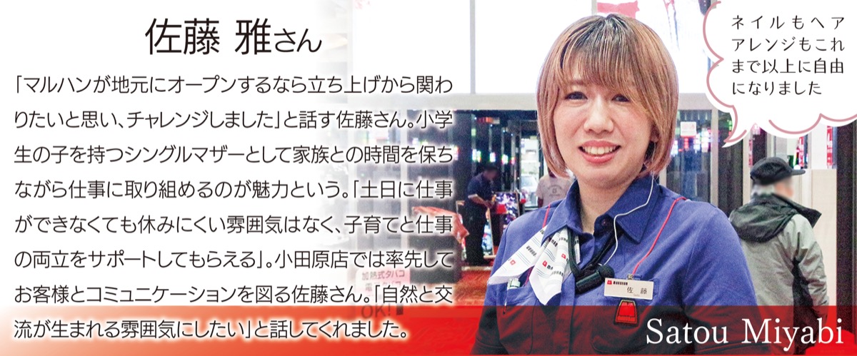 働きやすい環境づくりは別の視点でも行われている。マルハン東日本カンパニーでは男女問わず、スタッフの髪型など従来の細かな規定を改め、個性を生かす方向性にシフト。小田原店もこの自由な雰囲気により、店内はこれまで以上に活発で明るい印象に変わった。「伸び伸びと仕事に取り組むことが接客態度にも表れます。言葉遣いや気遣いを自然と身に付けて日々の暮らしに波及していけば、そういった成長も地域への貢献なんだと思います」と山中店長は話す。