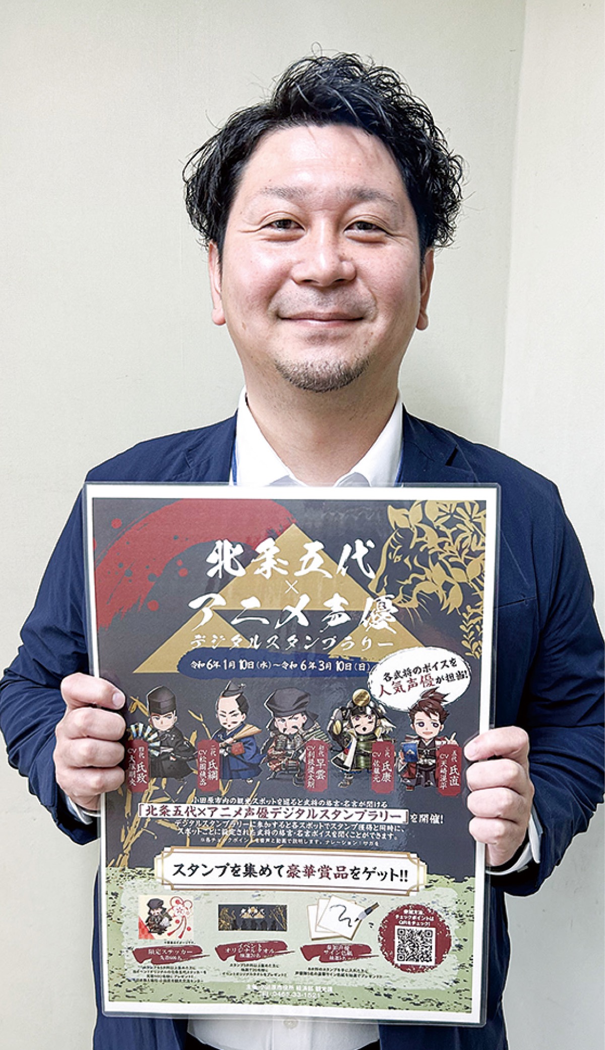 各武将の名言や格言は学芸員に相談して選び、それぞれの言葉の解説も盛り込んだ。北条早雲役は、うたわれるもの二人の白皇・オシュトル(ハク)役を演じる利根健太朗さん、氏綱役に鬼滅の刃・嘴平伊之助役の松岡禎丞さん、氏康役に天国大魔境・マル役の佐藤元さん、氏政役に推しの子・アクア役の大塚剛央さん、氏直役をヒプノシスマイク・山田三郎役の天崎滉平さんが務めている。スタンプのスポットは小田原城天守閣・常盤木門や小田原宿なりわい交流館をはじめ石垣山一夜城など、小田原宿観光回遊バス「うめまる号」のルート上を中心に設定。観光スポットの回遊性も高めている。スタンプを5個以上集めると先着600人に市観光交流センターでオリジナルステッカーがもらえるほか、獲得数に応じてオリジナルタオルなどが当たる抽選に応募できる。