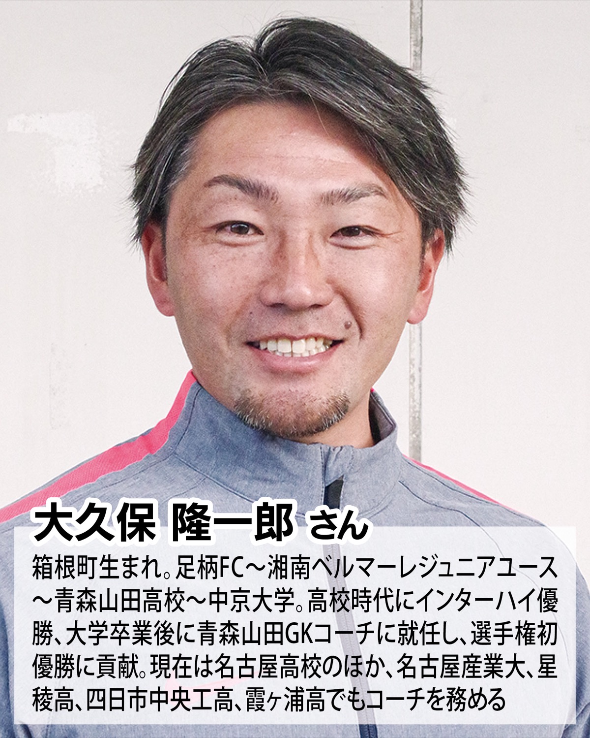 年末から年明けにかけて行われた全国高校サッカー選手権で、初出場ながら8強入りを果たした名古屋高校。同校のヘッドコーチを務め、今大会で優勝した青森山田高校でも2018年までGKコーチだったのが大久保隆一郎さん=35・足柄FC出身=だ。