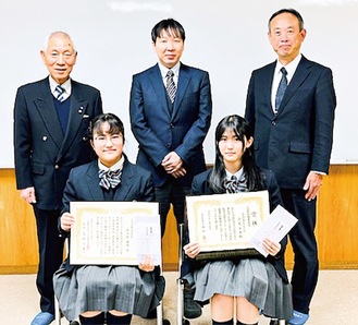 「第31回青色申告・租税教室の感想文コンクール」の表彰式が1月15日、立花学園高校(松田町)で行われ、最高位賞である小田原税務署長賞を同校の芭蕉未来さん(2年)が受賞した。また、同校最優秀賞には佐々木遥香さん(2年)が選ばれた。