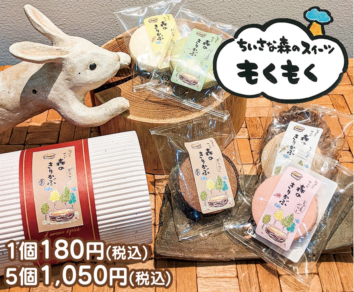 開店10周年を迎え、外観をリニューアルした県道719号沿いにある手作りお菓子、創作スイーツ専門店『ちいさな森のスイーツもくもく』が新商品「森のきりかぶ」の販売を開始した。