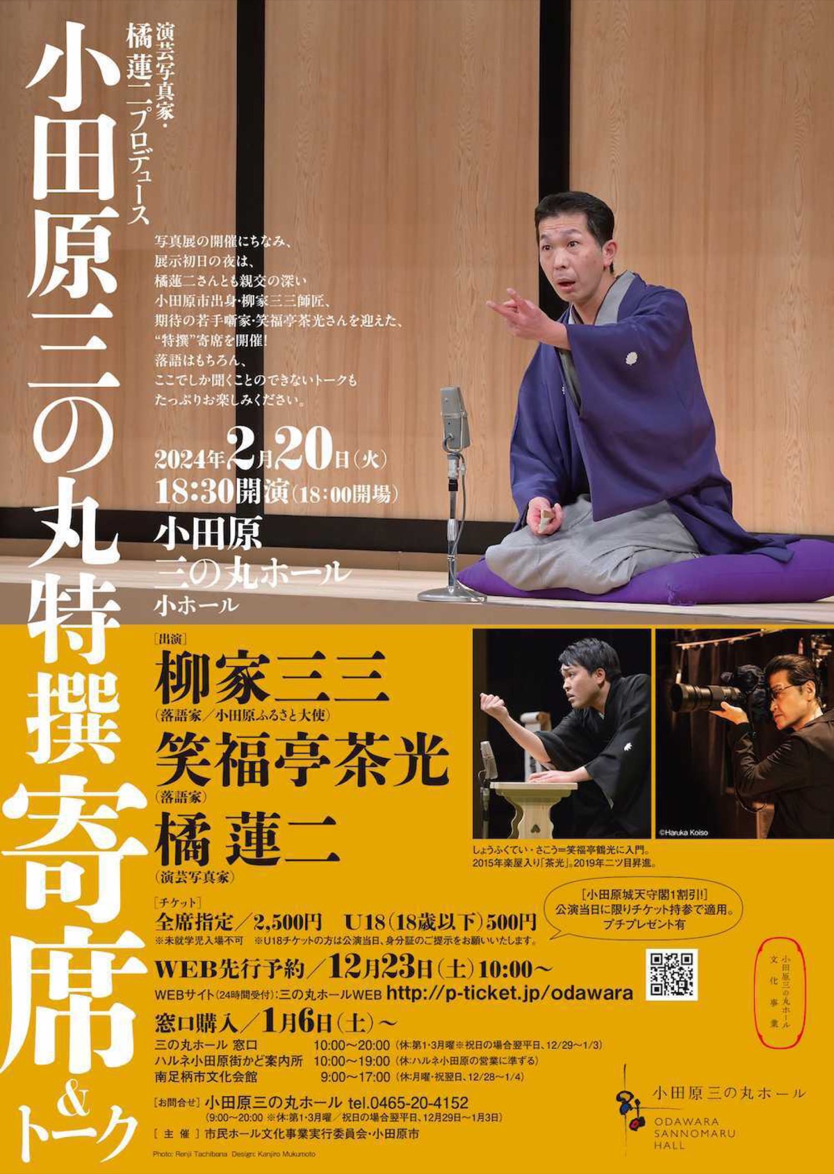 「演芸写真家・橘 蓮二プロデュース小田原三の丸特撰寄席&トーク」が2月20日(火)、小田原三の丸ホールで開催される。午後6時30分開演。