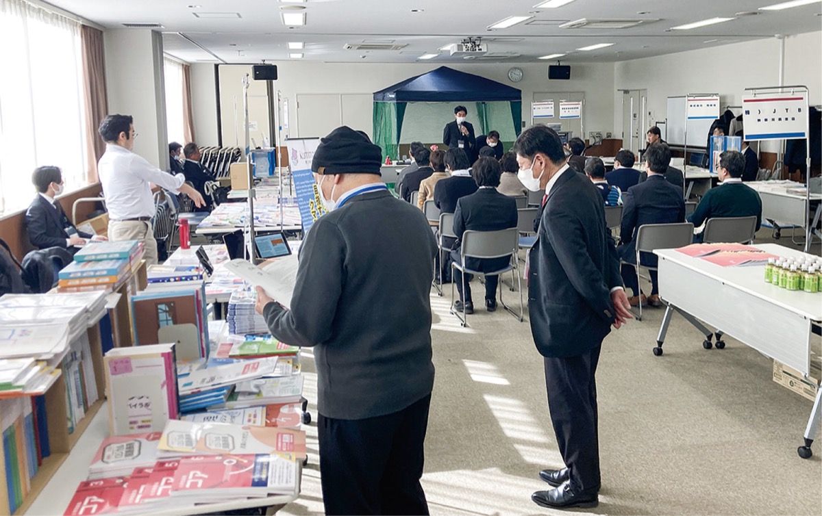 (一社)神奈川県学習塾連絡会(磯崎斉会長)が主催し、情報提供などを目的に毎年実施している最新教材の展示イベント。今年度は14社がブースを出展し、新年度に向けたテキスト教材や副教材コンテンツの展示、プログラミング教育につながるドローン教材のデモ機展示などが行われた。会場では各企業が自社教材のPRも行い、来場した関係者が熱心に耳を傾けていた。