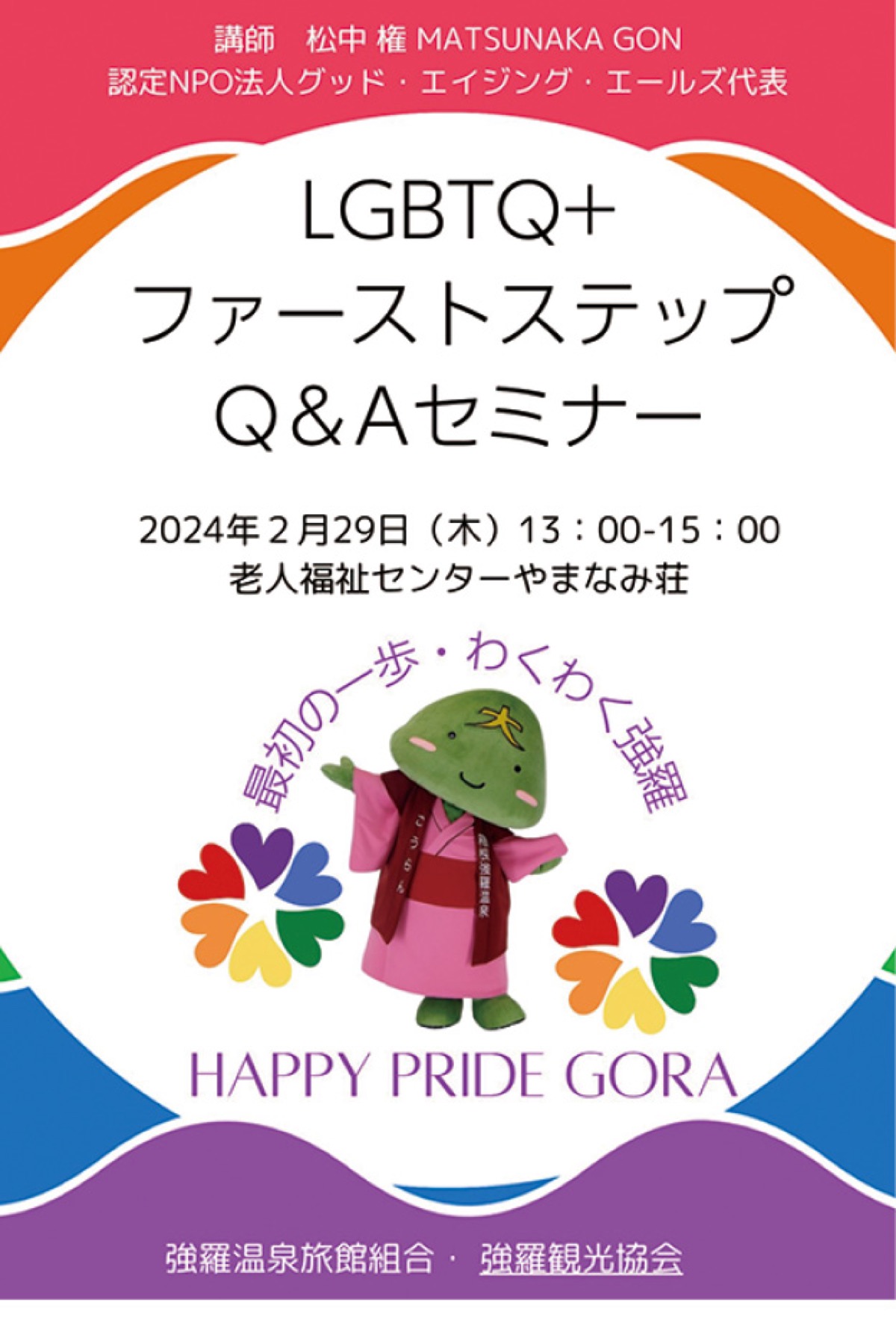 箱根町老人福祉センターやまなみ荘(強羅1320の185)で2月29日(木)、「LGBTQ+ファーストステップQ&Aセミナー」が開催される。午後1時〜3時。