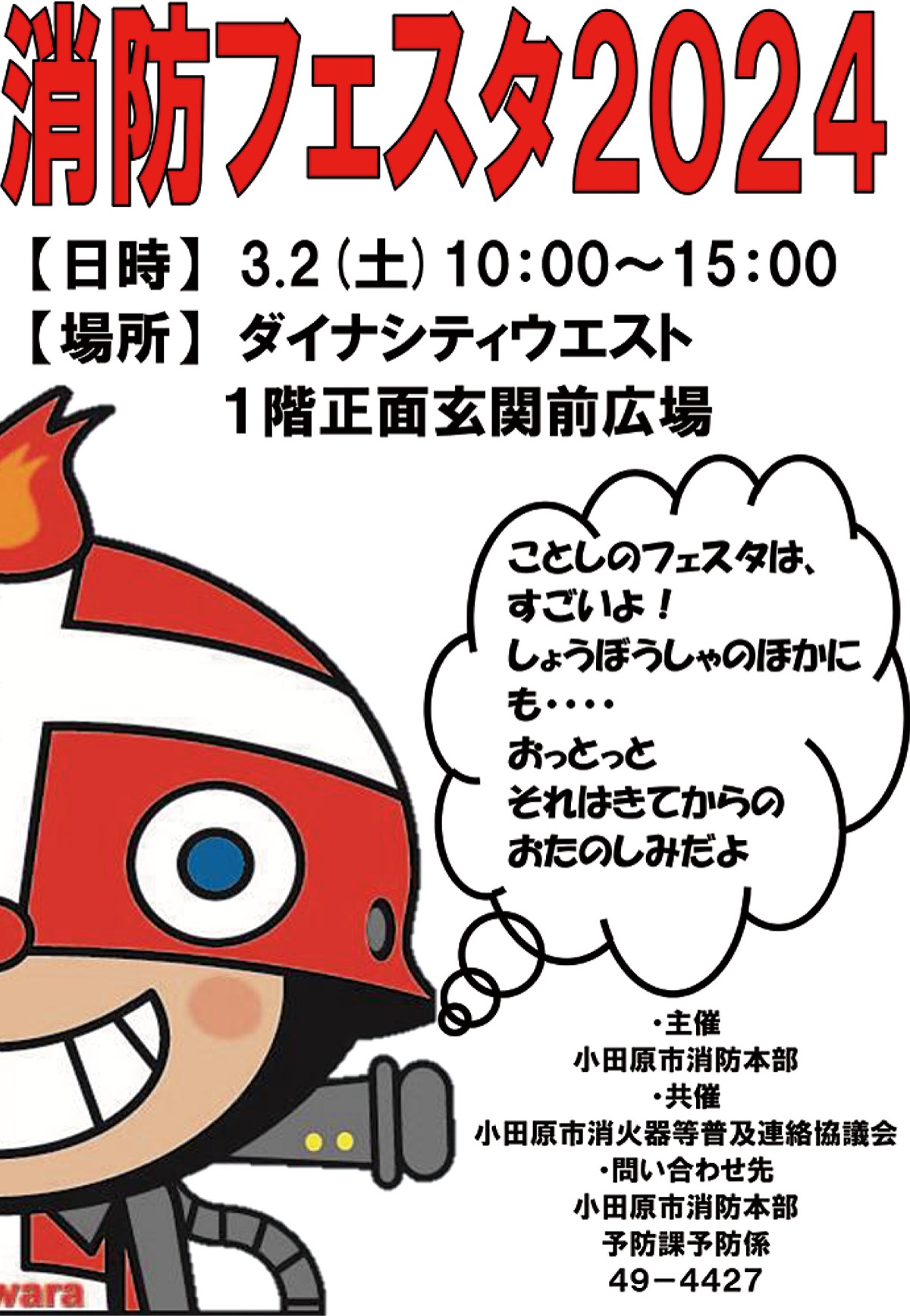 この催しは3月1日から7日(木)までの「春季全国火災予防運動」に合わせて企画された。主催は小田原市消防本部。当日は防火衣の着装、消火器取り扱いなどの体験や、消防車両の展示、住宅火災予防の啓発が行われる。またこの日限定の特別展示も予定している。