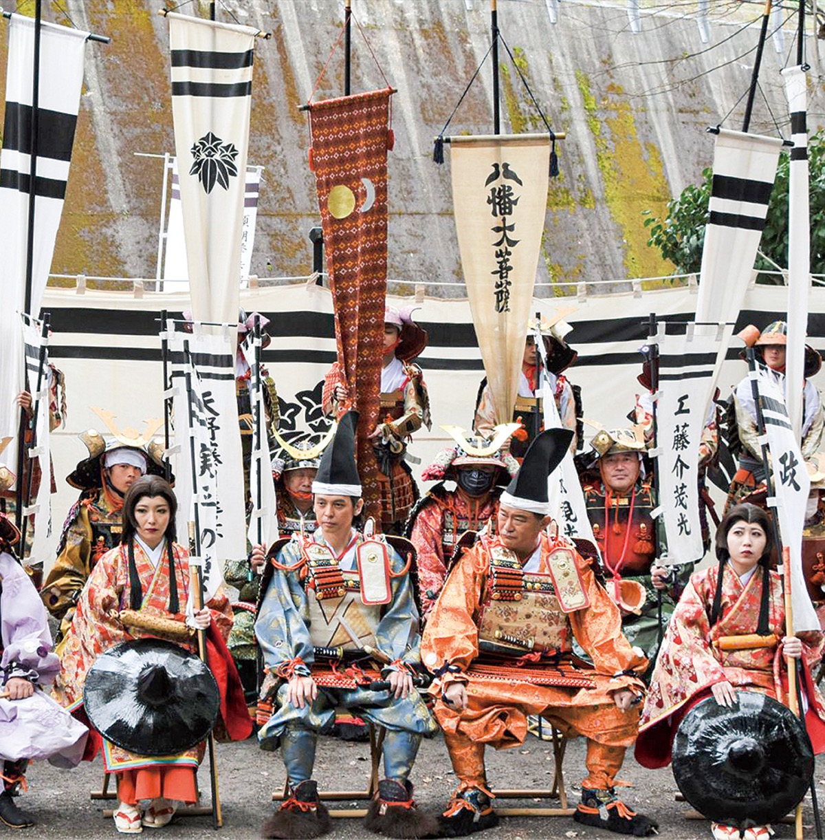 源頼朝の挙兵に尽力した土肥実平を偲ぶ祭で、武者行列は、源頼朝が伊豆国で挙兵し、土肥郷に入って石橋山へと出陣する様子を再現したもの。