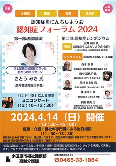 認知症をにんちしよう会(武井和夫会長)による普及啓発イベント「認知症フォーラム2024」が4月14日(日)、川東タウンセンターマロニエほかで開催される。入場無料。