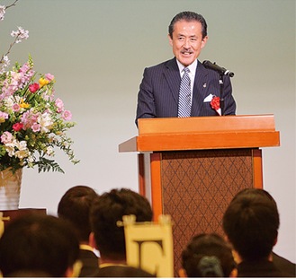 鈴木会頭は「大切な人生の時間のなかで働く場所として小田原、箱根を選んだことに感謝を込めて、心から歓迎致します」とあいさつ。続いて守屋輝彦市長、勝俣浩行町長からもエールが送られた。