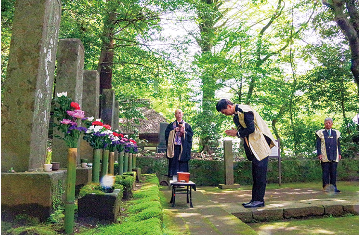 (一社)小田原市観光協会関係者らが4月20日、北条氏の菩提寺である早雲寺(箱根町湯本)を訪れ、小田原北條五代祭りの安全祈願を行った=写真。