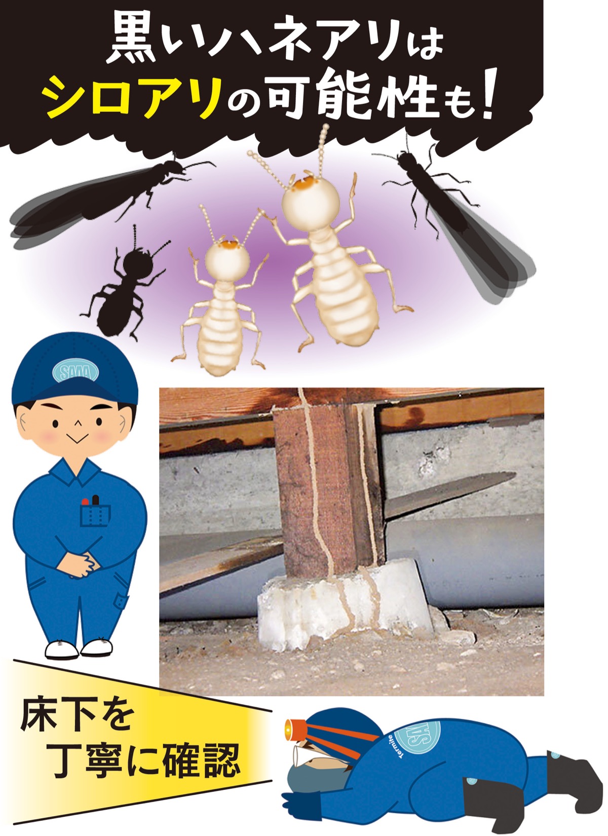 自宅の周りに黒いハネアリ1979年創業の三和消毒