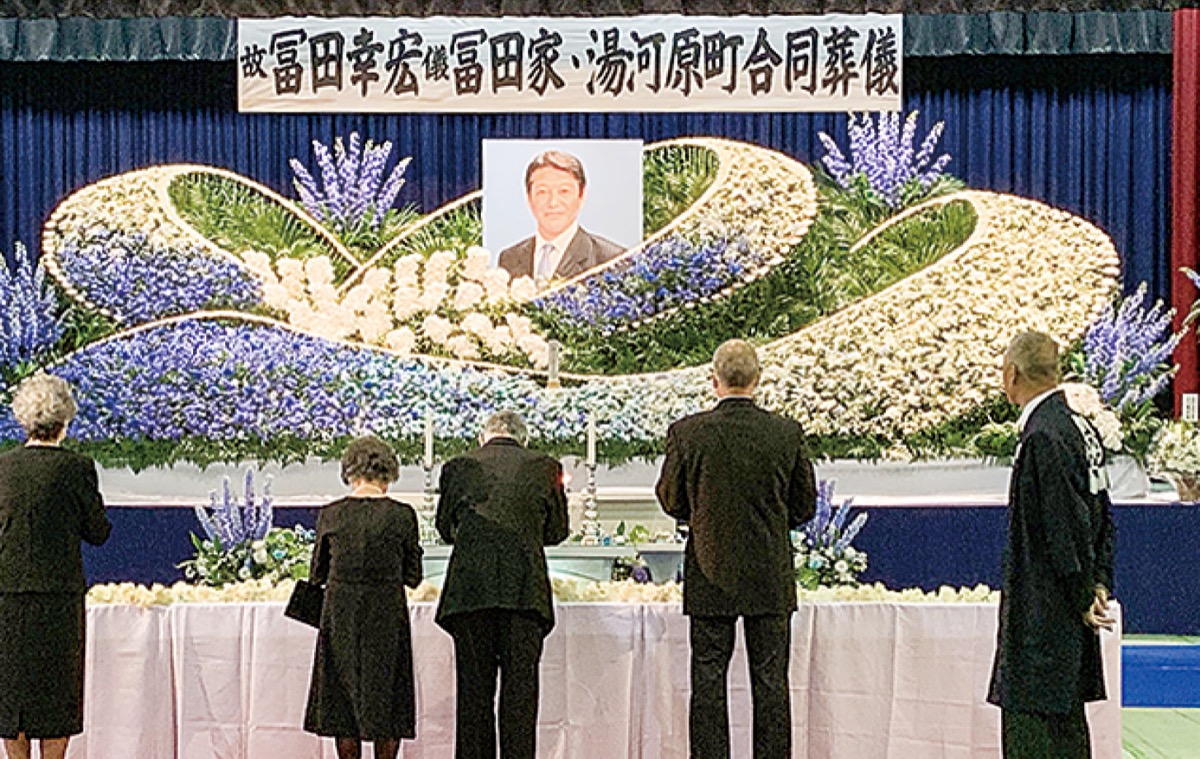 冨田家と湯河原町の合同葬儀として施行された葬儀には、親族を始め、町民、近隣自治体の首長などが参列した。