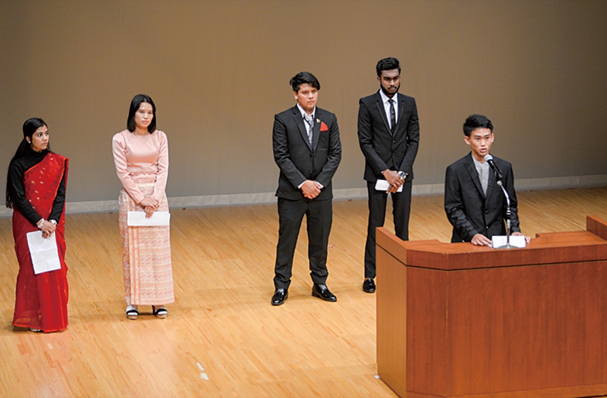 入学宣誓では5人の新入生が登壇し、来日した理由や入学後の意気込み、将来の目標などを日本で話していた。あいさつした一人、シマさんは日本の文化を学ぶためバングラデシュから来日。「日本語の勉強に加えて、マナーやルールなど学んで実践していきたい」と意気込みを語った。