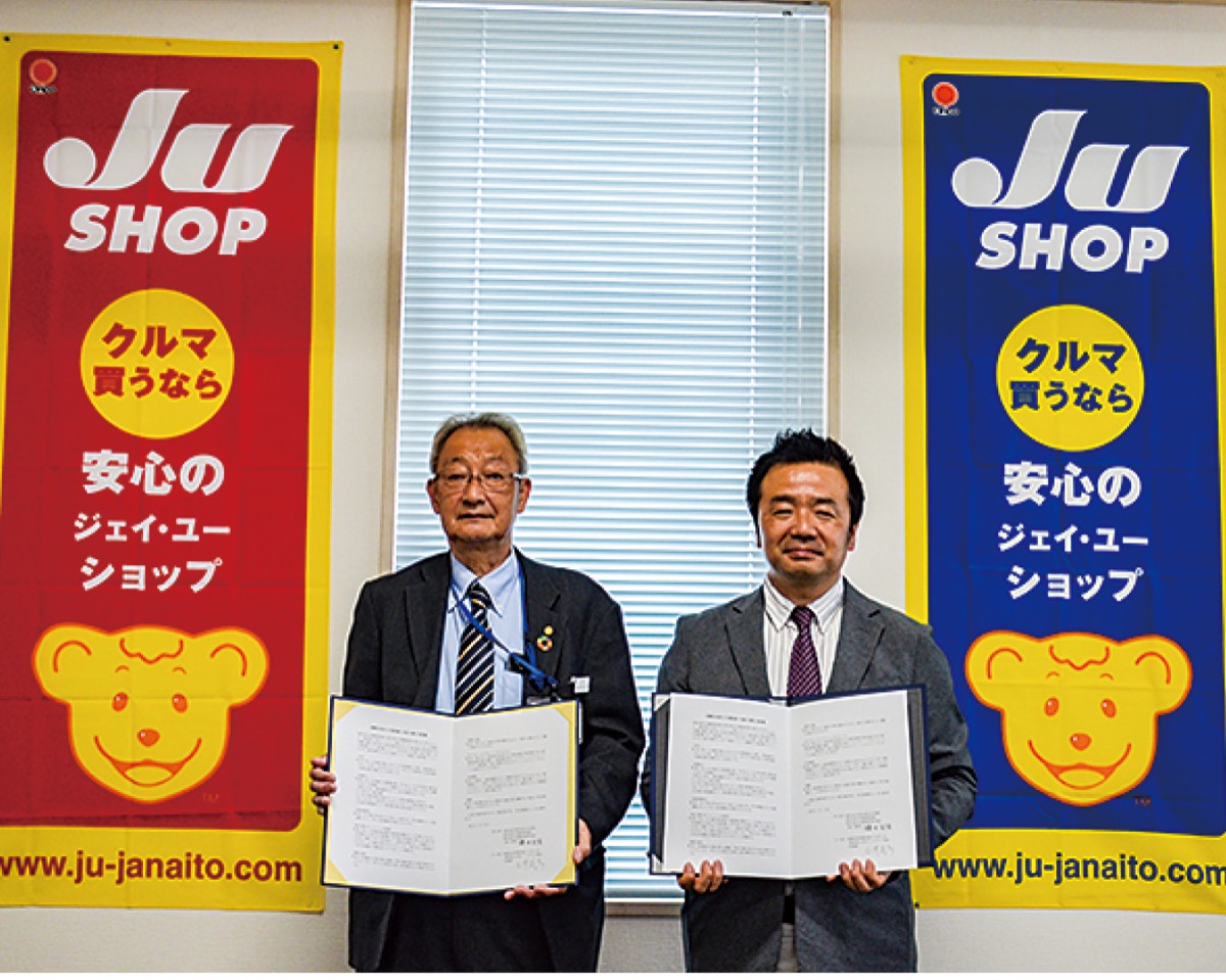 小田原市成田に本拠を置くJU神奈川(県中古自動車販売協会・販売商工組合)は、災害時に車両提供の支援活動を行う団体と「自動車を活用した支援活動への協力に関する協定」を結び、5月23日に協定締結式を行った。