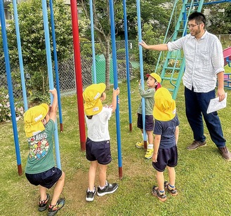 ワークショップには4・5歳児9人が参加。前半は園舎の設計を担当している(株)環境デザイン研究所のメンバーと、小田原市職員らに園児がお気に入りの場所を紹介。かくれんぼ遊びで身をひそめる場所や好きな遊具、新幹線を見られるスポットなどを案内した。園児の声を聞いた同研究所の宇佐美洋平さんは、「かくれんぼへの熱量を感じると同時に、園児の落ち着ける場所を設ける大切さを改めて感じた。子どもたちの意見を大事にしていきたい」と話した。