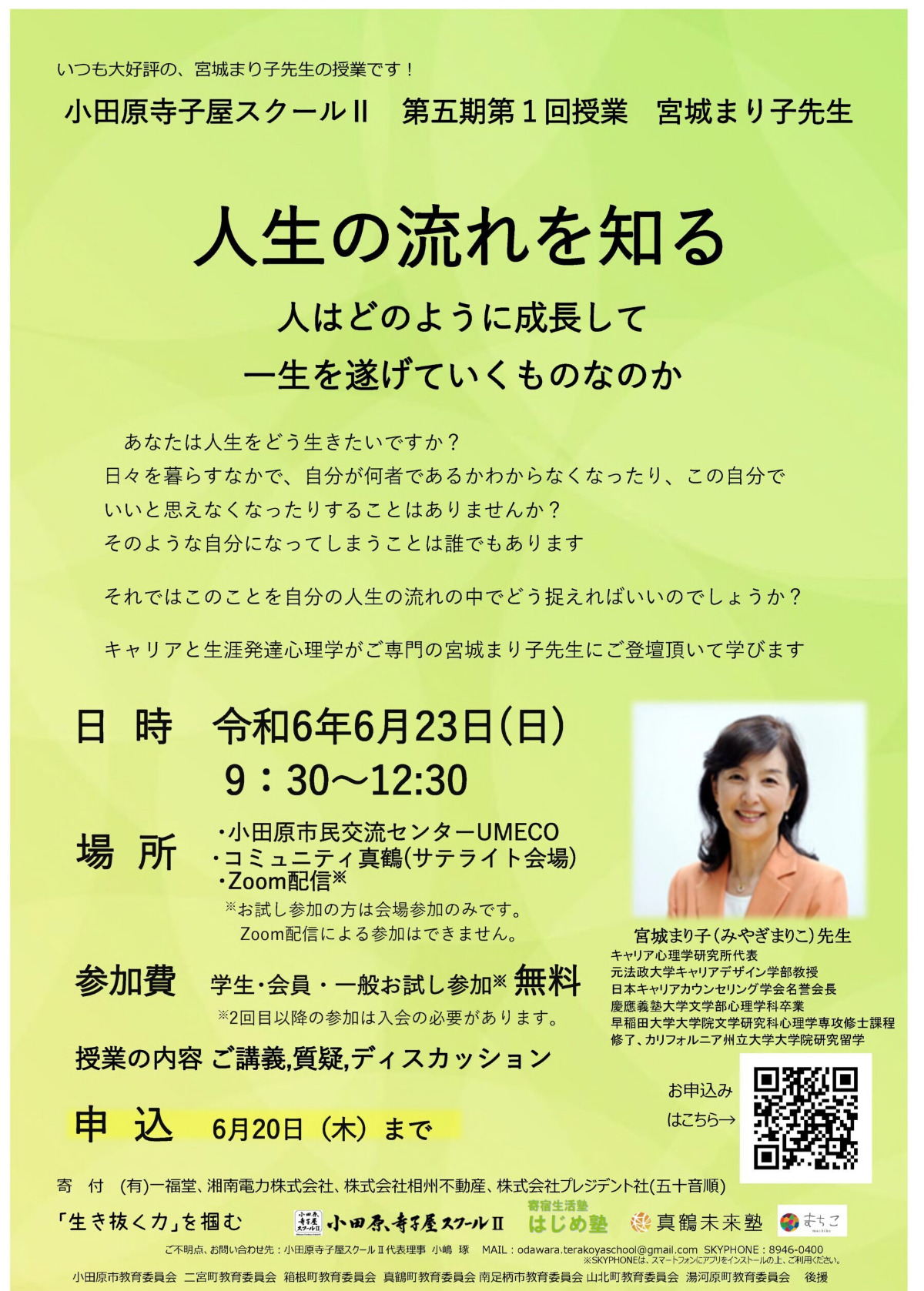 小田原寺子屋スクールII(小嶋琢代表理事)が6月23日(日)、おだわら市民交流センターUMECOで授業「人生の流れを知る」を行う=写真。
