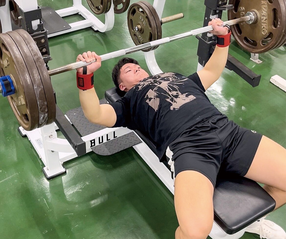 2年生では昨年11月に岡山県で開催された全日本学生大会の93kg級に出場し、スクワット237・5kg、ベンチプレス147・5kg、デットリフト240kg、合計625kgで優勝し、世界大会への挑戦権を獲得した。