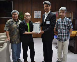 小田原文化芸術協会(杉崎宗雲代表)が6月12日、小田原市役所を訪れ、加藤憲一市長に15周年の記念誌を贈呈した。