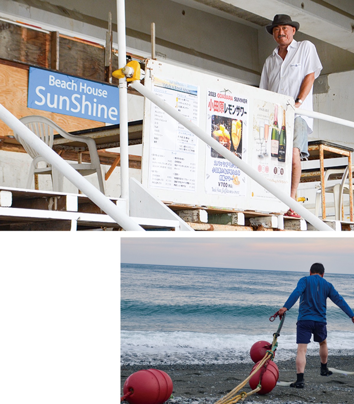 海の家は飲食サービスを提供するだけでなく「セーフティの役割がある」と話すのは2年前から運営を担う福田眞章さん。ライフセーバーと共に溺れている人がいないかを監視し、もしも救助者が出た際には、緊急の処置を行う場所を提供するという。また、地元の素潜り漁師が遊泳エリアを区分する目印となるブイを設置するなど、海開きに向け準備が進められていた。