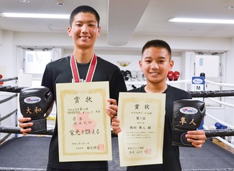 小田原市栄町のボクシング&フィットネスジム「M─flap」に通う岡田大和さん(小田原東高・2年)と隼人さん(白鷗中・2年)兄弟がボクシングの関東大会で揃って優勝した。