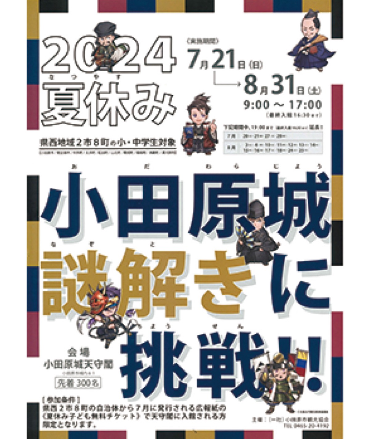 小田原城天守閣で7月21日〜8月31日(土)、小中学生対象イベント「小田原城謎解きに挑戦!」が開催されている。主催は小田原市観光協会。