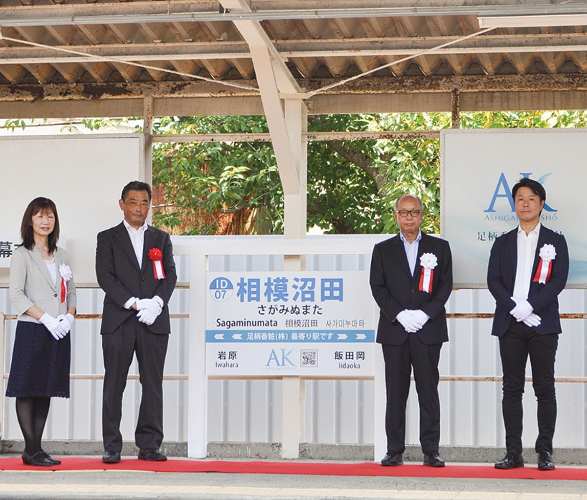 伊豆箱根鉄道は現在、沿線地域の企業の認知度向上に寄与するために副駅名権契約を進めており、大雄山線において今回は2例目となる。新宅広樹取締役常務執行役員は沿線の事業者に対し「地域の企業はなくてはならない存在。一緒に地域を良くするためにぜひ手を挙げてほしい」と呼び掛けた。