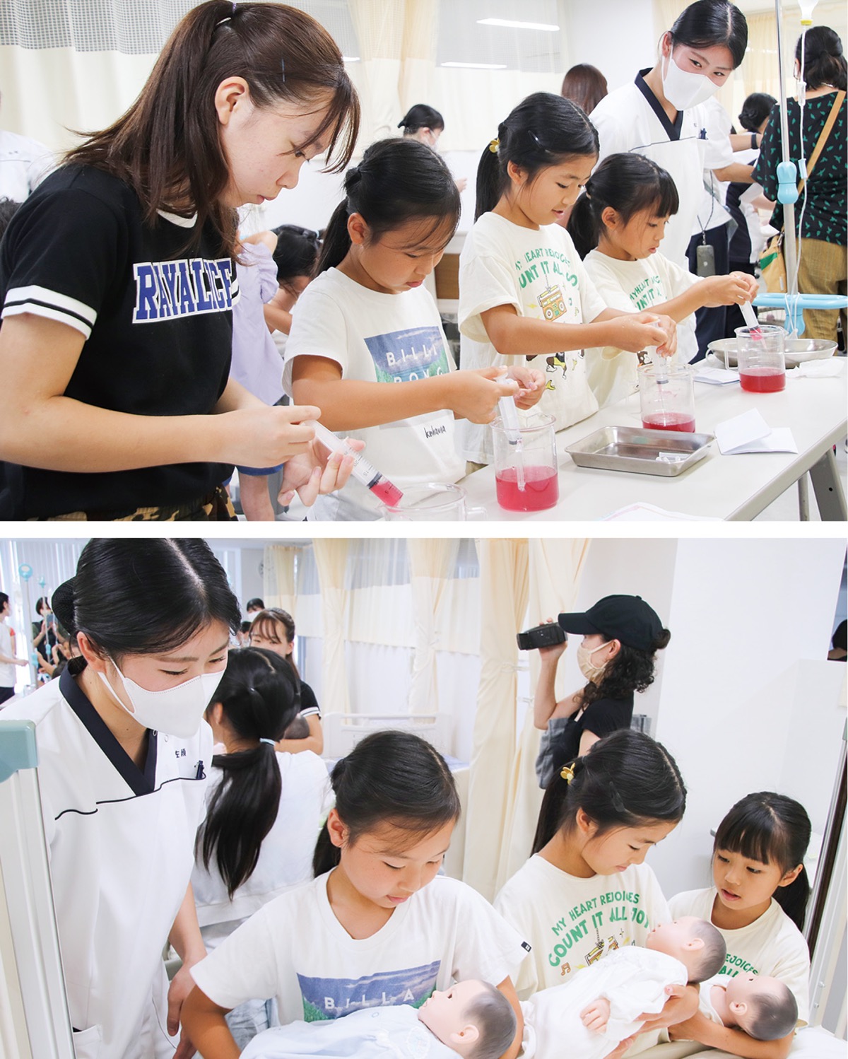 おだわら看護専門学校(横田俊一郎学校長)で7月末に「小学生ナース体験〜看護師さんのお仕事をやってみよう〜」が開催された。