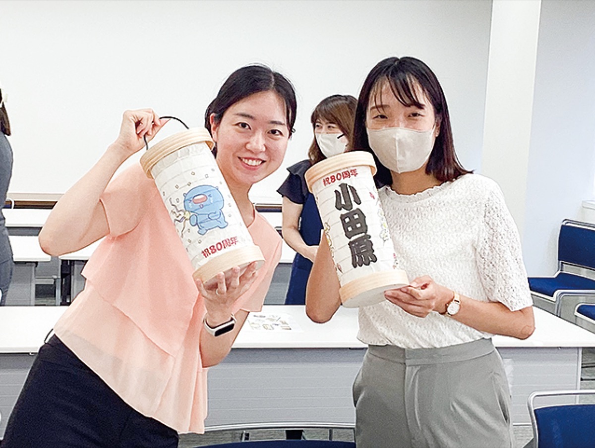 清水支店長は「小田原の伝統文化に触れる良い機会になった。普段違う課で働く職員同士の交流にもなった」と話した。完成した小田原ちょうちんは同店1階のロビーやカウンターの上に展示されている。