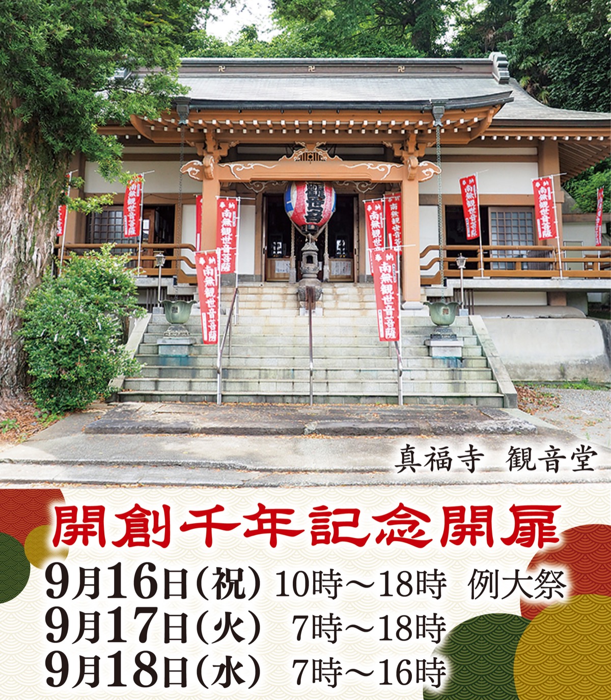 早川にある真言宗東寺派寺院の「真福寺」が今年開創千年を迎えた。その記念として、9月16日(祝)、17日(火)、18日(水)の3日間、普段は秘仏となっている「聖観音世音菩薩」を開扉する。