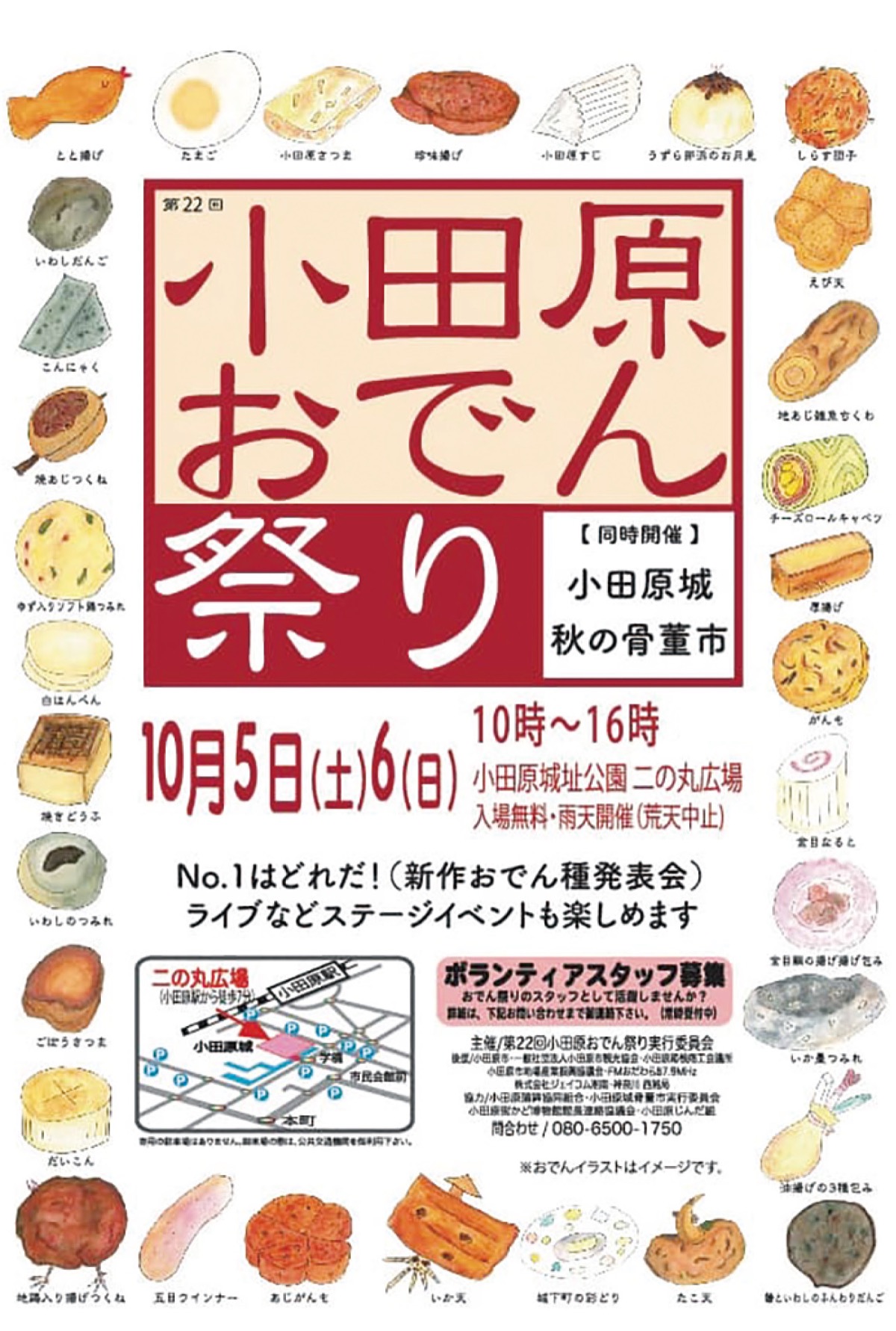 「第22回小田原おでん祭り」が10月5日(土)と6日(日)の2日間、小田原城址公園二の丸広場で開催される。午前10時〜午後4時。入場無料。