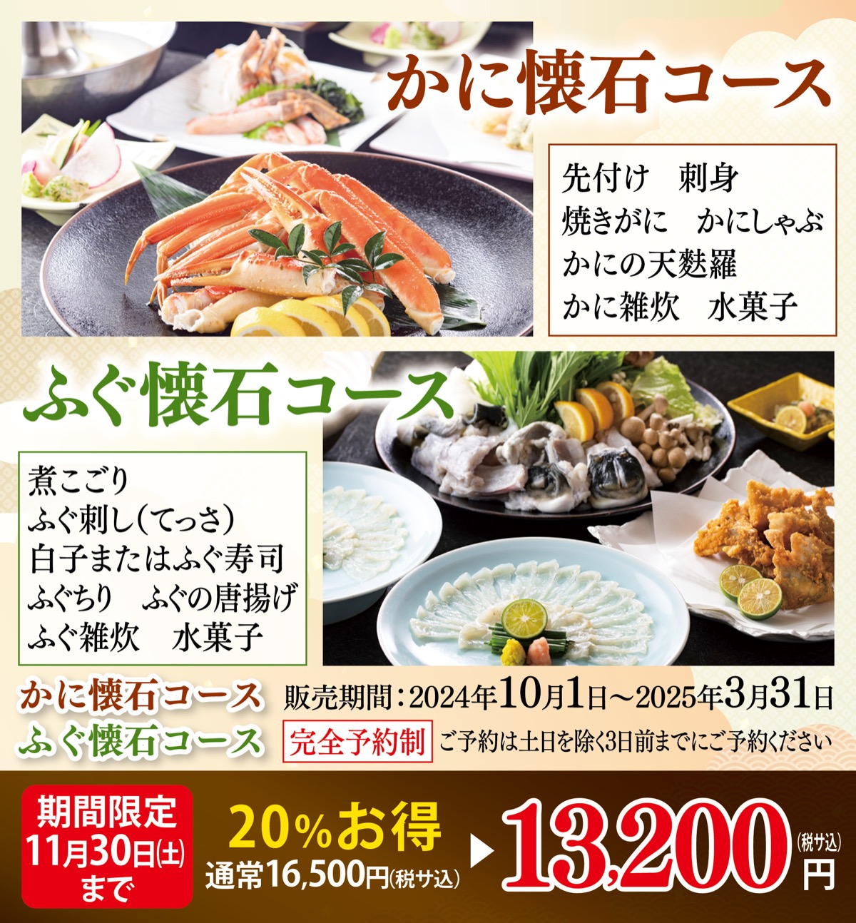 さらに期間限定の特別企画として11月30日(土)までは、両コースともお得な1万3200円(税サ込)で楽しめる。この機会にぜひご賞味を。