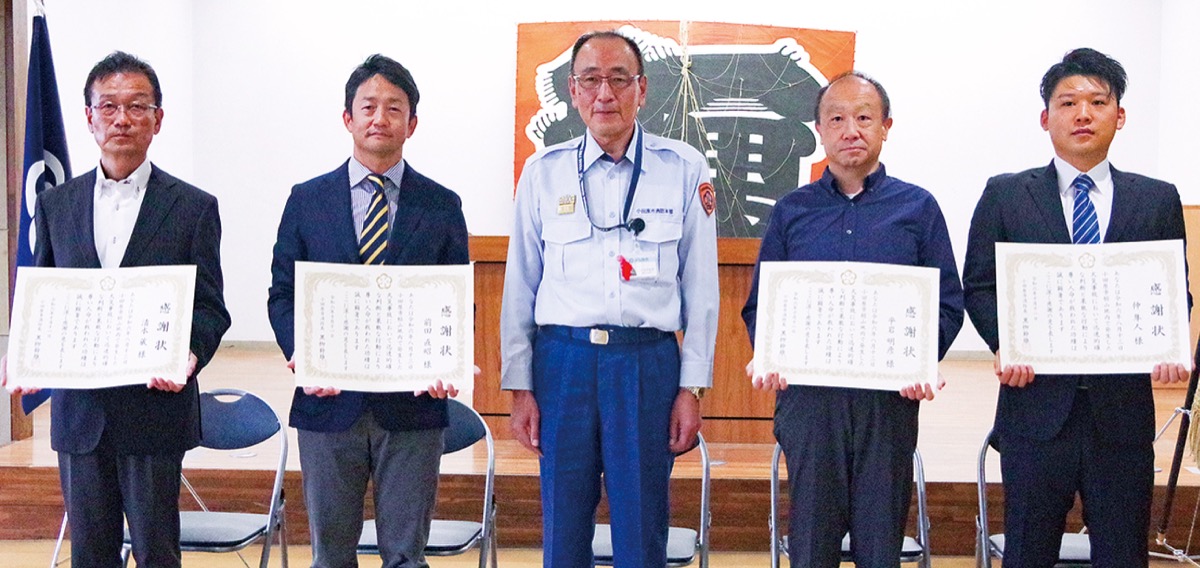 黒栁消防長は「火災の中で勇気を出して地域の力を示していただいた。自然災害などの際も力を合わせてほしい」と感謝の言葉を贈った。