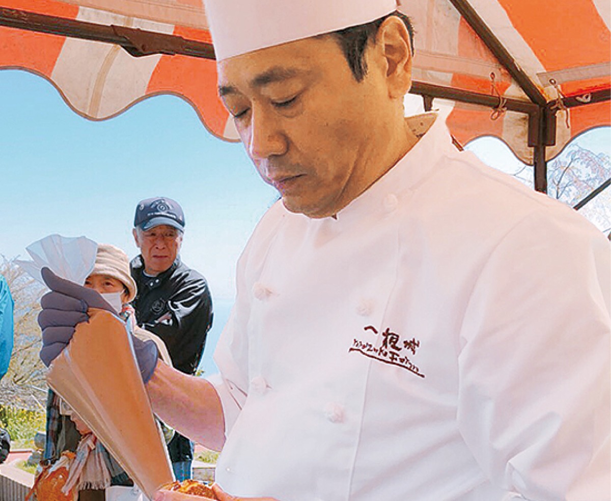 毎回大人気の鎧塚俊彦オーナーシェフ=写真=による1日限定スイーツ。今年は「紅はるかのブリュレ」が数量限定で登場する。